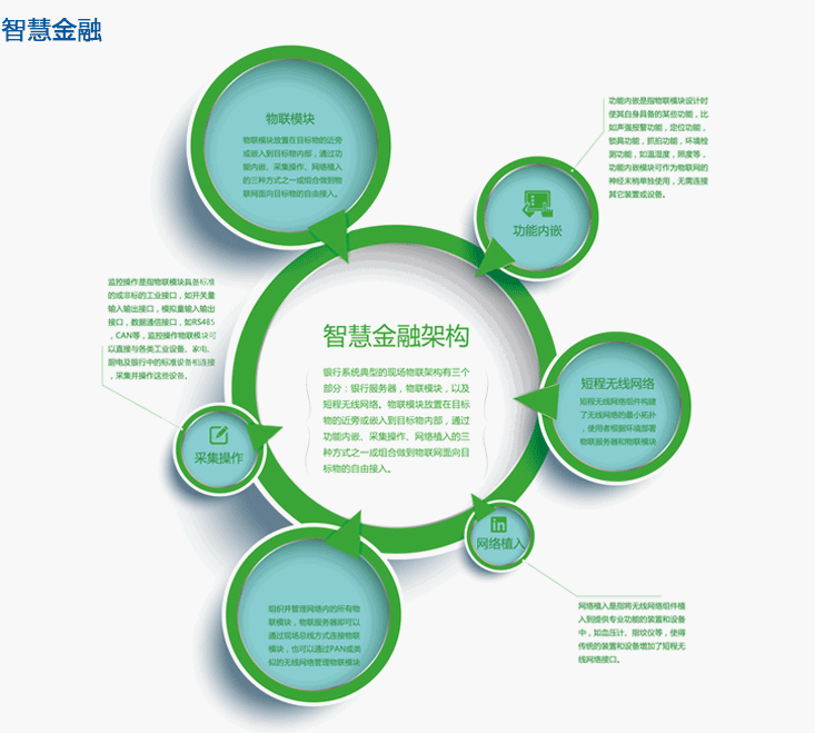 智慧金融(smart Finance)是建立在金融物聯網基礎上,通過金融云,使金融行業在業務流程、業務開拓和客戶服務等方面得到全面的智慧提升,實現金融業務、管理、安防的智慧化。