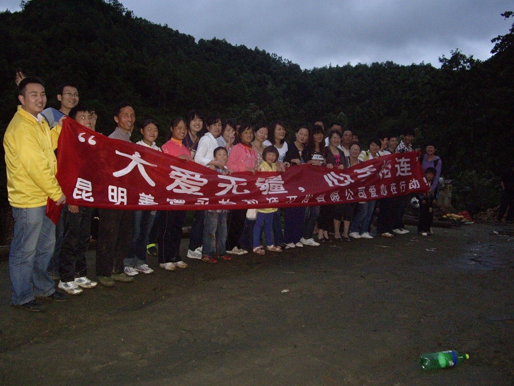 17日下午我們結束了手頭的工作,驅車前往目的地正式開始了我們獻愛心活動。經過兩個小時的顛簸,晚上7點左右我們到達附近的縣城,這時天色已漸漸暗下來,由于我們這次要去的地方在一個山區,天色已暗,山路不好行駛,為了安全起見我們就在縣城暫住一宿。